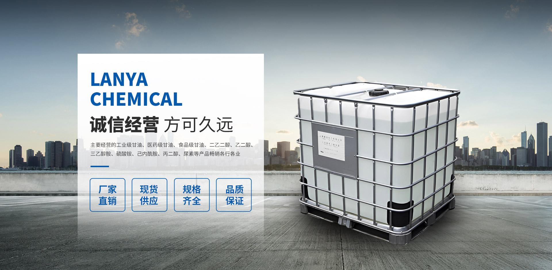 常州藍亞新材料科技有限公司是一家集技術研發(fā)、技術服務、生產加工、經銷批發(fā)為一體的化工經營企業,擁有完整、科學的質量管理體系,以雄厚的實力、低廉的價格,優(yōu)良的服務與多家企業建立了長期的合作關系。我們有很廣泛的商品信息網絡,合作伙伴遍及世界各地,我們在“質量為先”的經營理念指導下,經過全體員工的不懈努力,以經取得了令人矚目的成績,并擁有一支業務精通、操作能力強的骨干隊伍。公司實力雄厚,重信用、守合同、保證產品質量,產品品種齊全、價格合理,以多品種經營特色和薄利多銷的原則,贏得了廣大客戶的信任。 藍亞化工,主要經營的工業級甘油、醫(yī)藥級甘油、食品級甘油、二乙二醇、乙二醇、三乙醇胺、硫酸銨、己內酰胺、丙二醇、尿素等產品暢銷各行各業,在各大企業當中享有較高的地位。公司與多家加工廠、零售商和代理商建立了長期穩(wěn)定的合作關系。本公司的二乙二醇、工業級甘油、三乙醇胺等液體散裝有機化學品品種齊全、價格合理,廣泛用于各行各業。 公司位于目前中國具活力的長江三角洲地區有發(fā)展?jié)摿Φ某鞘小V荩乩砦恢玫锰飒毢瘢懡煌ū憷?